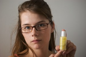 This is my “before” shot with my sample sized Huile de Palme. The Huile de Palme is partially solid. It needs to be warmed up so that it becomes liquid. I ran the bottle under some warm water before applying.